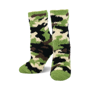 Fuzzy Camouflage Crew Socks: Slip into these socks and disappear into a world of comfort with the fuzzy texture and stylish camouflage pattern. They'll keep your feet safe from enemy fashion attacks and give you the confidence to blend in... or stand out! Grab a pair and join the secret squirrel squad of sock enthusiasts!