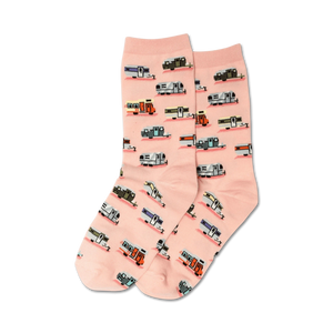 Canned ham campers made their appearance in the 1930s. It was no surprise why these charming, little campers were so well-liked. Their compact size and practicality made traveling and camping super easy. If you love iconic vintage RVs, these fun socks are perfect for you. Each cool pair has various RVs printed all over on a pink background.