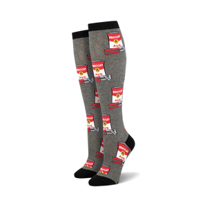 These Can of Whoop Ass Knee High Socks for Women will have you dishing out plenty of laughs this season. With a witty "WHOOP" can design, you'll find yourself in splits of laughter. These grey beauties feature adorable can openers sitting above the text. Be sure to wear a fresh pair to your next stand-up or when you're feeling a bit down and need a pick-me-up. These funky kicks are cute, and comfy. So whoop, there it is, it's time to stock up on some whoop ass!