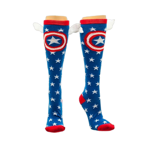 Who doesn't want to be a superhero? With these cool socks, you can be as heroic and brave as Captain America! Each awesome pair has the iconic Captain America shield on it and a pair of fun wings attached to the side of the socks. These crazy socks surely won't let you down - at least not any more down than you already are. It can only go up from here!