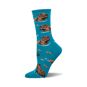 Set sail in a river of style with our Capybara Chill socks! Sporting playful brown and white capybaras gently adrift in river-blue hues, these socks are swimming with charm. The tiny fish flitting about add an extra splash of fun. Perfect for your next casual outing or as a quirky conversation starter at your next social gathering. Wondering what footwear can snag smiles and start chats? Look no further than these charming crew-length treasures - they're just the ticket for adding a little light-heartedness to your look.