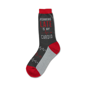 Cardio Crew Socks: These socks are the ultimate workout wear for anyone who loves to take it easy. 'Running late is my cardio' is emblazoned on these gray crew socks with red and white text. Perfect for the gym or a lazy day on the couch, these socks let everyone know exactly what your fitness routine really is.