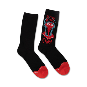 With Carrie socks, you can invoke the horror of Stephen King's novel while declaring war on plain socks. Show your Carrie fandom with a crimson kiss, a black backdrop, and the iconic name in blood-red inked below. Embrace your horror sock side and let the blood drip in style.