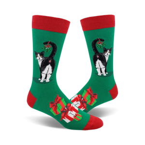 Deck the halls and get your paws on these festive holiday cat socks! Each colorful pair features a sassy cat butt adorned with mistletoe and presents, making them the purrfect gift for any cat lover this Christmas.
