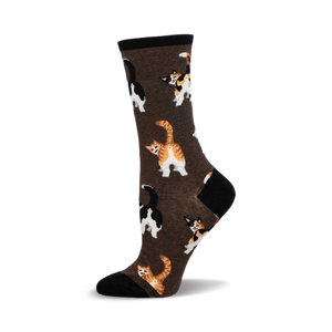 When a cat rubs its butt on your leg, its not just a quirky helloconsider it a badge of honor in the secret society of cat servants. These brown socks featuring black, white, orange, and white cats facing away from the viewer capture that hilarious yet heartwarming feline gesture. Perfect for every proud cat servant who knows the true meaning of that cheeky rub!