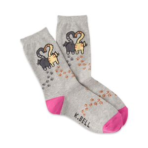 The Cat Love Socks are the purrfect way to show your feline devotion! These gray socks with black and orange cat butts arranged in a heart shape, paw prints, and pink toes and heels are sure to make you feel like the cat's meow! Wear these crew socks next time you need a reminder that even the smallest creatures can have big hearts!