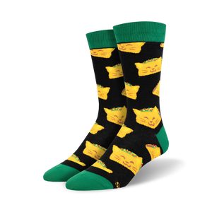 Savor the flavor of Cat Tacos with these knee-slapping socks featuring cartoon cats sporting hard taco shells on their heads. Giving a whole new meaning to "the cat's meow, " these feline tacos are sure to spice up your feet and tickle your funny bone. For when the purrfect snack calls, Cat Tacos answer! Meow!