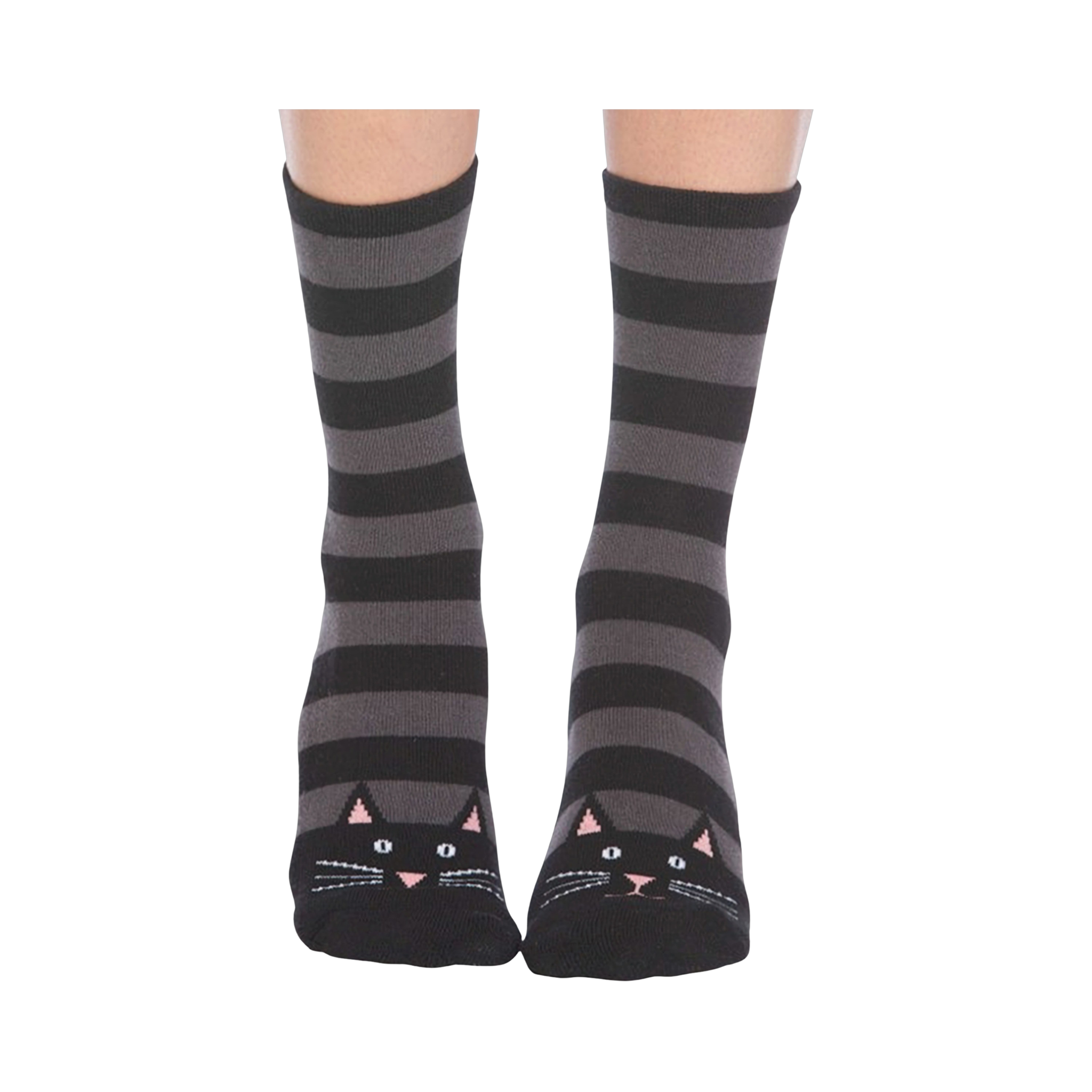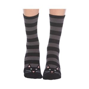 Slip into a pair of these cat-tastic socks and let the world know that you're not just a cat lady, you're a fierce feline fashionista! With their sleek black and gray stripes and adorable kitty faces, these slipper socks will make you the envy of all your cat-loving friends. Plus, they're non-skid, so you can strut your stuff without slipping and sliding. Meow!