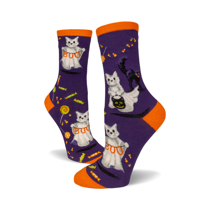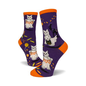 Ever notice how cats manage to be both mysterious and adorable at the same time? These Halloween cat socks capture that feline enigma perfectly. With friendly kitties dressed in ghostly costumes, these socks provide the perfect mix of spooky and sweet. Who needs feet when you've got paws that can float through walls, after all?