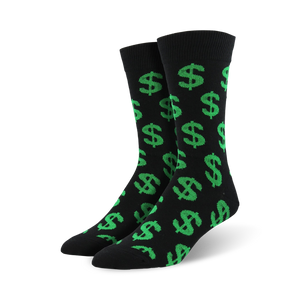 Cha-Ching! Put on your money socks and step into the spotlight! These black socks covered in vibrant green dollar signs are not just fashionable ”they're a statement piece. Let the world know you're a financial rockstar strutting in these eye-catching kicks. Show off your unique style and watch the compliments roll in. Remember, money talks, and with these socks, it's shouting your fabulousness loud and clear. Ready to make a fashion statement that's worth a million bucks?