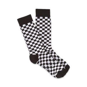 A classic staple for racing and wardrobes has to be the one and only checkerboard print. This pair of black and white crew socks features and all over checkerboard print with black toes, heels, and cuffs. Perfect for dressing up or down. Sure to get you checked out! Get it?
