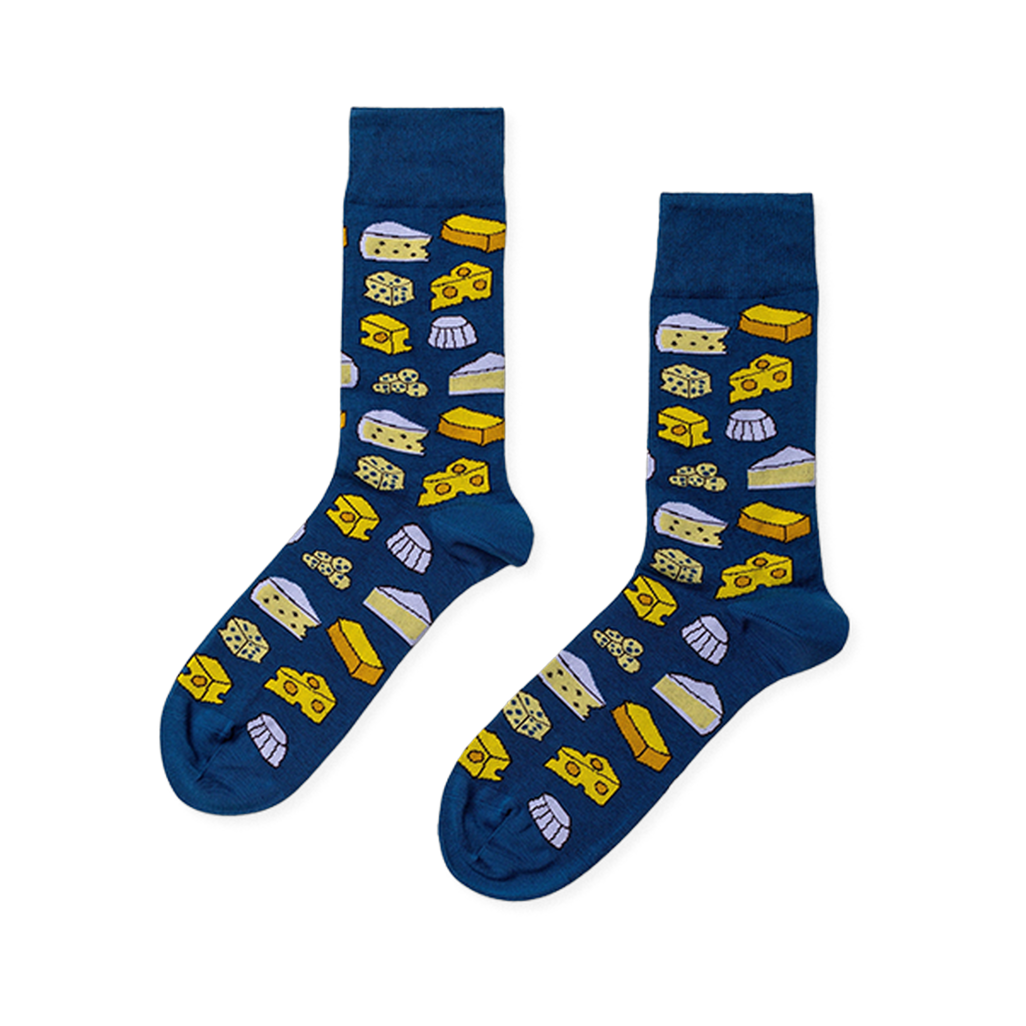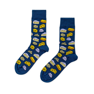 For the person who appreciates a good cheese board almost as much as a good pair of crew socks, these men's socks bring the whole assortment to the table. Wheels, wedges, holes, rinds, and tidy little blocks are scattered all over the design, making each glance feel a bit like opening the fridge after a long day and finding something worth celebrating. The pattern has a playful, foodie feel without going overboard, which keeps it easy to wear with jeans, chinos, or whatever else is already in rotation.