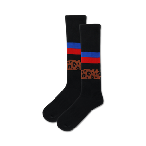 Roar into the wild side of fashion with these Cheetah Stripe Knee High Socks! Featuring a fierce pattern of brown and orange stripes on a black backdrop, these socks are sure to make a statement. Perfect for those who love to stand out from the crowd, these socks are sure to turn heads wherever you go. Made for women who like to let their wild side run free, these socks are perfect for any occasion. Show off your cheetah-licious style today!