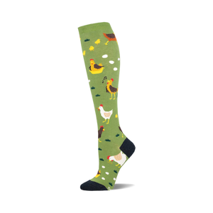 Cluck, cluck! Who's ready to shake up their wardrobe with a bit of farmhouse flair? Meet the Chicken Ranch socks, a quirky addition guaranteed to bring a smile. Adorned with a playful pattern of chickens, chicks, eggs, and grassy patches, these crew-length socks are perfect for casual outings, cozy weekends, or surprising your favorite hen enthusiast. Why not give your feet a peck of style and bring the barnyard fun wherever you go?