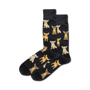 Kick off your day with a yippee! Our Chihuahua Crew Socks are perfect for your canine-loving feet. Join paws with these fun and colorful socks featuring a quirky pattern of cartoon Chihuahuas in brown, tan, and white. Great for elevating your everyday style, or for a doggone good time on the town!