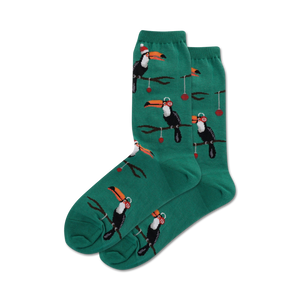 Calling all Christmas enthusiasts! Set your toes free with our "Christmas Toucans" socks! Picture this: toucans decked in jolly Santa hats, perched on festive branches adorned with crimson berries, and all of it painted in merry shades of green. These crew-length socks for women are here to remind you that Christmas cheer comes in all shapes and sizes, just like these adorable toucans. Embrace the holiday spirit, one sock at a time!