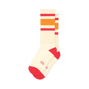 There's nothing quite like the nostalgia of retro style, and our Cindy socks capture that vibe perfectly. With their laid-back fit and bold splashes of color, these socks are all about bringing back that old-school comfort, one step at a time. Whether you wear them pulled up for a classic look or scrunched down for a relaxed feel, these socks offer a gentle hug around your calves. Made in the USA with high-quality Natural 1/18 Cotton, and featuring playful accents of Fuchsia and Neon Orange Nylon, they're designed for those who appreciate the perfect blend of comfort and expressive flair. Embrace the past while stepping into the future with these vibrant, gender-neutral gym socks.