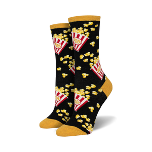 Craving a cinematic snack that won't leave you feeling like a greaseball? Slip into these Classic Popcorn crew socks! Each sock features a delightful pattern of red-and-white striped popcorn buckets spilling over with yellow-and-white kernels of popcorn. They're the perfect way to satisfy your cravings for the cinema experience without all the butter and calories!