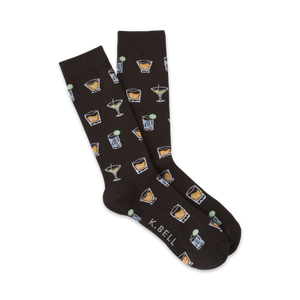 Party hearty in these cocktail-themed socks! Show off your love for the classics with these crew socks covered in cartoon-style martinis, margaritas, daiquiris, and whiskey sours. Perfect for your next gathering or just a relaxing day at home, these socks are guaranteed to raise a smile and make you the life of the party.