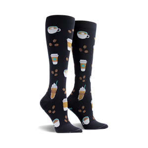 Rise and grind in these caffeinated knee-high socks, featuring coffee cups, beans, and whipped cream! Whether you're a coffee connoisseur, a latte lover, or just need a caffeine fix, these socks will brew up a smile on your face. Plus, they're the perfect conversation starter at your next coffee klatch.