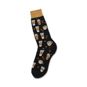 These coffee cup designed socks are the perfect pick-me-up for the coffee lover in your life. Featuring a bold black backdrop, the pattern of latte-colored mugs and rich roasted beans will add a touch of caffeine-fueled style to any outfit. Whether you're brewing a pot at home or grabbing a to-go cup from your favorite cafe, these crew-length cotton blends will keep your feet feeling perky all day long. So, sip on a cup of Joe, put on a pair of these sweet socks, and let the caffeinated adventure begin!