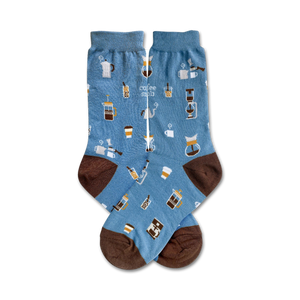 Coffee Snob Crew Socks: Wake up and smell the fashion! These blue crew socks are not just for java lovers, they're a style statement. With coffee beans, mugs and pots in bright shades of coffee and cream, they're sure to perk up your day. They say, "I run on coffee and sarcasm, preferably at the same time!"