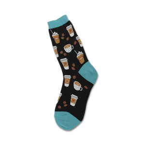Strut with a spring in your step when you rock these java-themed crew socks boasting a captivating pattern of white coffee cups filled with brown liquid and brown coffee beans, all set against a captivating blue backdrop. The toe and heel are also blue, adding a touch of whimsy. Perfect for the coffee lover in your life, these socks will keep your feet cozy and caffeinated all day long. Whether you're sipping a latte, brewing a pot, or just dreaming of that perfect cup, these socks will make you feel like you're at your favorite coffee shop.