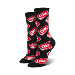 Heads up! Show off your love for the iconic red can with these Coke Cans crew socks for women. Rock the vibrant pattern of Coca-Cola cans with crisp white lettering. Put on a pair and take a sip of style.