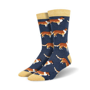 The Paw-fect Accessory for Collie Lovers! These socks aren't just some boring socks, they're the socks that will make you the talk of the town! You'll be the envy of all your dog-loving friends with these funky Collie Crew Socks. Featuring a playful pattern of collies in vibrant brown and white, these socks will show off your love for man's best friend in style. Made from a soft bamboo blend, these socks are as comfortable as they are eye-catching. Plus, they're designed to last, so you can enjoy your canine companions for years to come. Get your paws on a pair today and show your furry friends some love!