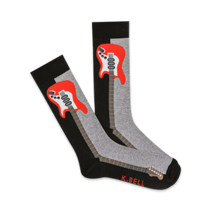 These Colorblock Crew socks are ready to rock your world with a pattern of red electric guitars on a gray background. Made for men, these socks have a ribbed top and a smooth toe. Crank up the volume on your style and grab a pair today.
