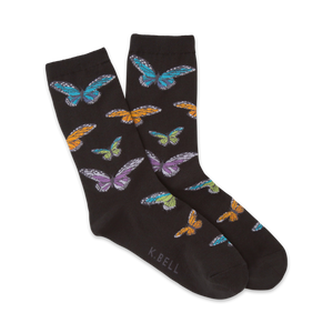 Celebrate the change of the seasons and take flight in a beautiful new pair of socks perfect for Spring time! This fun pair of all black crew socks features an all over print of vibrant and colorful butterflies in different sizes. Butterflies are a symbol for change, hope, and life.