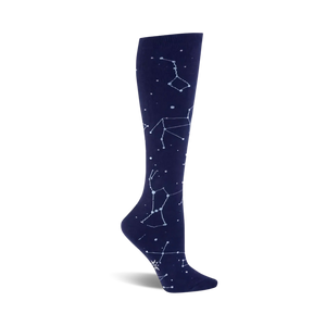 Take a map of the most famous constellations with you wherever you go! These super fun socks are not only eye-pleasing but out of this world. Each cool pair of dark blue knee high socks features a stunning display of different star constellations connected in the sky. Be sure to look out for shooting stars!