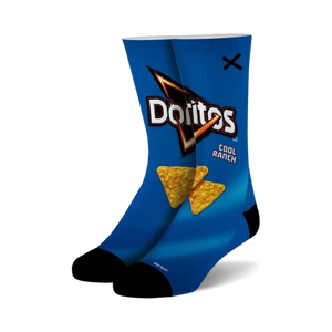 Cool Ranch Doritos Socks: These crunchy, cheesy, blue socks with a large Dorito on each foot will satisfy your cravings for delicious feet and fun. Cool Ranch Doritos socks are the perfect way to show off your love for the nacho cheese flavored tortilla chips without the calories. Wear them with your favorite pair of sneakers or dress shoes and enjoy the compliments that flow your way, because people will definitely notice your tasty socks! These socks are the perfect gift for any Doritos fan or anyone who loves fun and unique socks. They are sure to bring a smile to everyone's face.