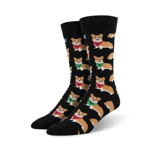 Corgi Crew Socks: Pawsome Pups in Style! Corgi Crew Socks: A delightful treat for any dog lover or canine enthusiast! These socks feature a vibrant pattern of cartoon corgis adorned with colorful bandanas, adding a touch of charm to your everyday wardrobe. Slip into these corgi companions and let their fröhlich spirit brighten up even the dullest of days. Show off your affection for cuddly canines and spark cheerful conversations wherever you go!