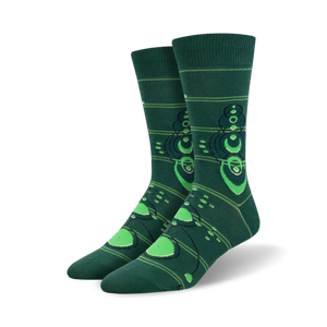 Crop circles are often associated with UFOs and aliens. With these socks, you can have a little piece of the mystery on your feet. They're dark green with a pattern of crop circles in a lighter shade of green. The crop circles are made up of concentric circles with a dot in the center. Whether you're a believer in aliens or just appreciate a good conspiracy theory, these socks are sure to spark a conversation. Plus, they're just plain cool.