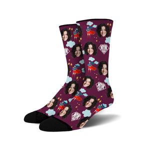 Custom Novelty Face Socks Super MOM