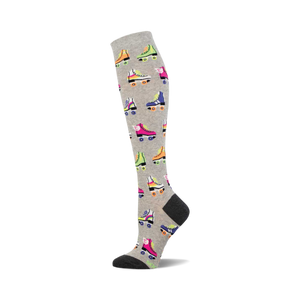 Channel your inner derby queen as you glide across the rink, leaving a trail of style in a pair of socks that capture the vibrant energy of roller skating. These grey knee-high socks, dotted with colorful roller skates, not only keep your feet cozy but also add a playful twist to your wardrobe. Whether you're navigating the city streets or twirling under disco lights, these socks are your perfect partner in flair and fun.