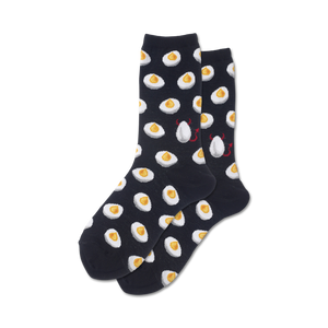 Ready for a devilishly good time? Slip into these egg-cellent crew socks showcasing a cartoonish parade of deviled eggs with saucy red horns. Let these socks ignite your outfit with a dash of spice and a sprinkling of silliness. Put some pep in your step with the playful adventures of these hard-boiled all-stars!