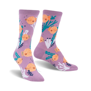 If you think pufferfish are just sea creatures, think again! These vibrant socks showcase the ocean's quirkiest inhabitants, turning your feet into a canvas of marine wonder. With a splash of orange pufferfish playfully swimming through seaweed and coral designs, these socks are a spirited tribute to the 120 species of pufferfish that add a dash of puff and personality to our oceans.