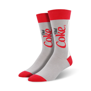 Need a midday pick me up? Something to help get your day going? Trying to get rid of that nagging, caffeine headache? A cold, refreshing sip of Diet Coke will definitely do the trick! These awesome men's novelty crew socks feature the iconic Diet Coke logo printed on the sides against a gray background. Show everyone your soda of choice when you slip on a pair of these cool socks!