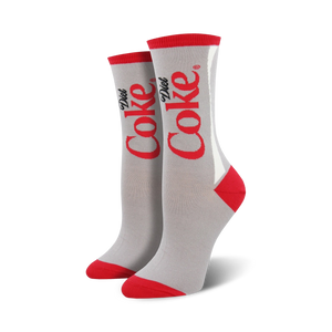 Craving something calorie-free for your lovely feet? You don't have to watch your figure when you wear a pair of these cool women's novelty crew socks. Each funny pair features the classic Diet Coke label printed on the upper sides of the socks. Indulge in these sweet socks and quench your cravings without all the guilt!