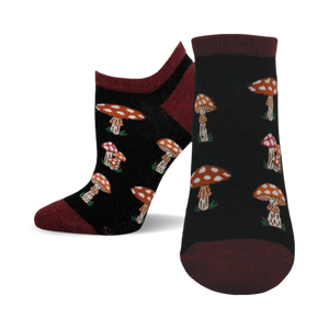Mushrooms aren't just for fairy tales or secret forest groves anymore; they’ve taken a bold step onto your socks! With "Digging the Mushrooms" socks, you can embrace a bit of whimsy with every stride. These quirky black ankle socks are sprinkled with a delightful pattern of magical mushrooms, ready to add a dash of charm to your day. Perfect for those who appreciate a touch of enchantment in their wardrobe.