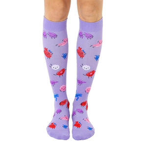 Sock it to 'em with these knee-high Doctor socks, featuring a vibrant purple hue and a whimsical pattern of human organs like the brain, heart, lungs, and more. These socks provide a playful twist on anatomy, turning your feet into a quirky medical marvel. Whether you're a healthcare professional, a biology enthusiast, or just someone who appreciates a good pun, these socks will add a touch of humor and curiosity to your wardrobe. Get ready to show off your inner doctor while keeping your toes cozy and stylish.