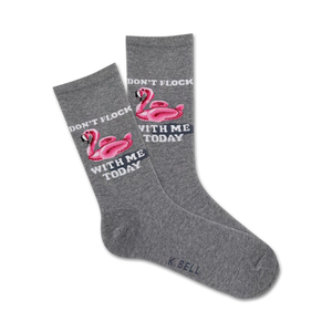Say Don't Flock With Me Today in style with these fun, lighthearted crew socks for women! Picture this: a majestic flamingo wearing shades, chilling on a pink inner tube ”all while floating across your feet. Perfect for a dash of flamingo flair on your feet or a sassy statement on a lazy day. Treat your toes to these toe-tally hip socks, and strut your flockin' fabulous self!