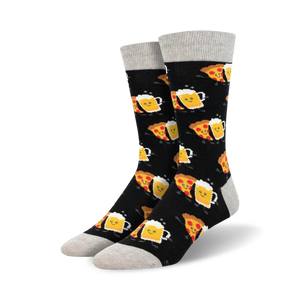 Pizza and beer, best friends forever! These Drinking Buddies socks will make you want to grab a slice and a frothy pint! In glorious shades of black, navy blue, and sunny yellow, these foodie socks feature cartoon pizza slices and beer mugs with smiley faces. Perfect for the beer lover in your life who also loves a good pizza party.