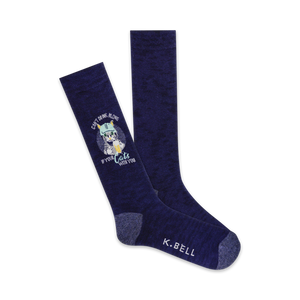 Raise a glass to your favorite drinking buddies while wearing these funny and boozy cat-themed socks! Featuring a picture of a cat wearing a hat and drinking from a glass, and the text "Can't drink alone if your cat's with you," these crew socks are sure to get a laugh from your friends. Who needs a designated driver when you've got your cat with you? They may not be able to hold your hair after a night of fun, but they'll never judge you for wanting that extra glass of wine.