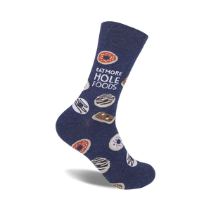 "These Eat More Hole Foods socks are as sweet as a cruller! With a fun and energetic blue and pink doughnut print, these socks are sure to turn breakfast into a delicious and playful adventure. Donut worry, be happy. Just remember to share, or you might find yourself with a hole situation on your hands. These socks come with a warning: It might make your friends hungry!"