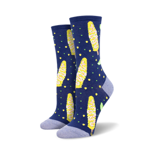 Pop some E-lot-e flavored fun into your step! Our colorful blue crew socks boast a delightful pattern of cartoon corn on the cob, complete with red, white, and yellow kernels wrapped in vibrant green husks. Slip into these E-lotes and get ready to corntastic adventure!