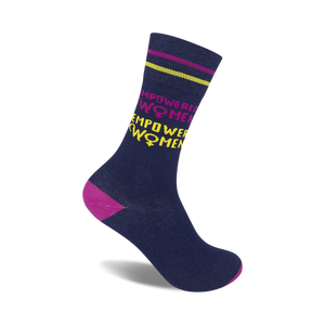 With these Empowered Women socks on your feet, you'll be walking tall and proud! These dark blue socks with pink and yellow stripes around the cuff will add a splash of color to your step. Wear them with flats, boots, or sneakers, and let the world know that you're a force to be reckoned with!