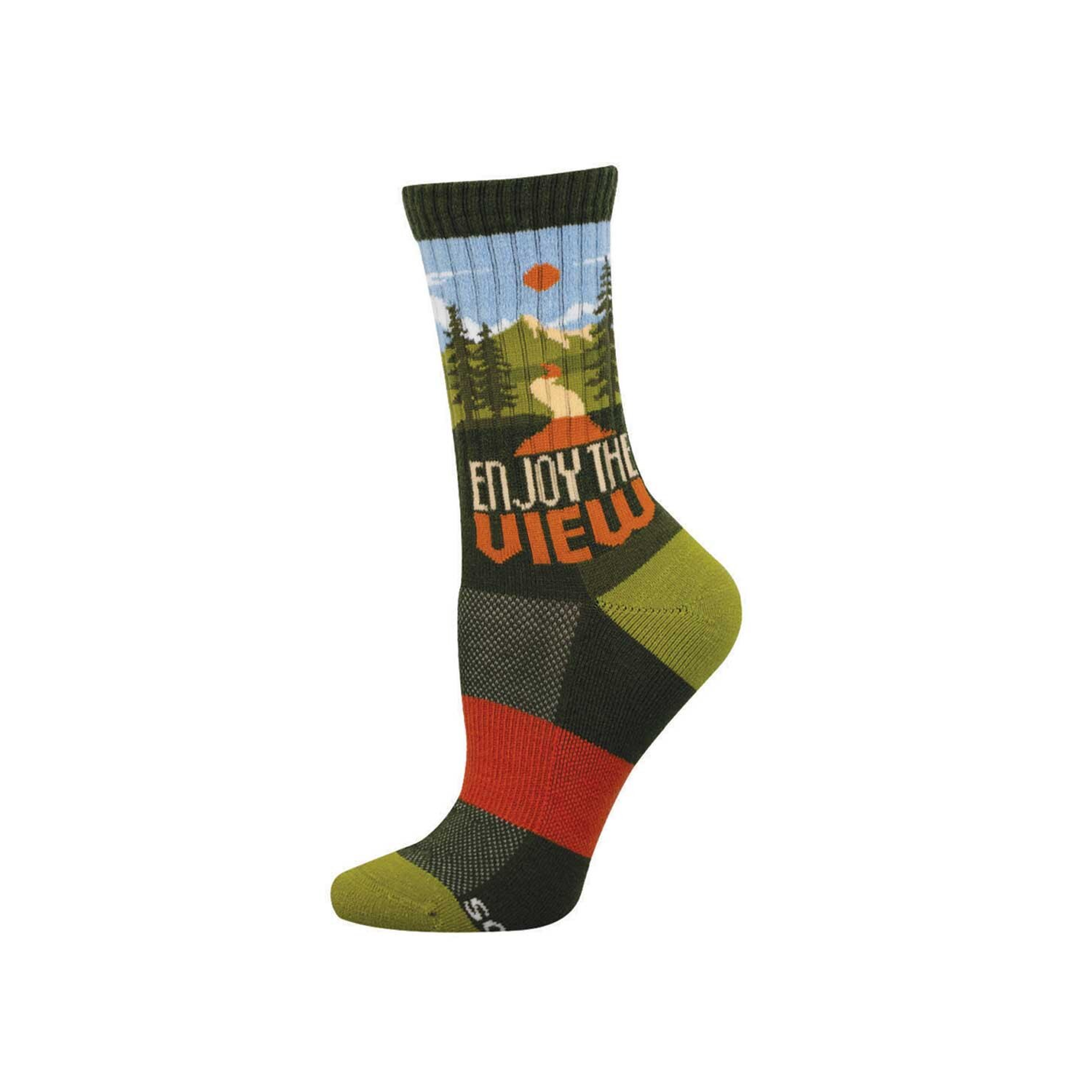 These women’s crew socks bring a little roadside postcard charm to the day. The mountain scene and bold “Enjoy the View” lettering give them a playful, outdoorsy feel, like a scenic overlook you can wear to work, on a weekend drive, or while pretending you planned the whole outfit around one great accessory.